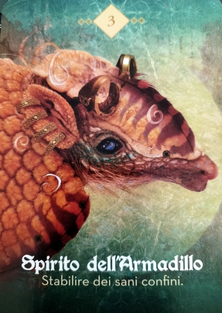 “Resterai sorpreso dai miracoli che avvengono quando lasci che lo Spirito dell’Armadillo ti protegga dall’assumerti troppe responsabilità, dal compiacere sempre gli altri, perdendo così la tua integrità“