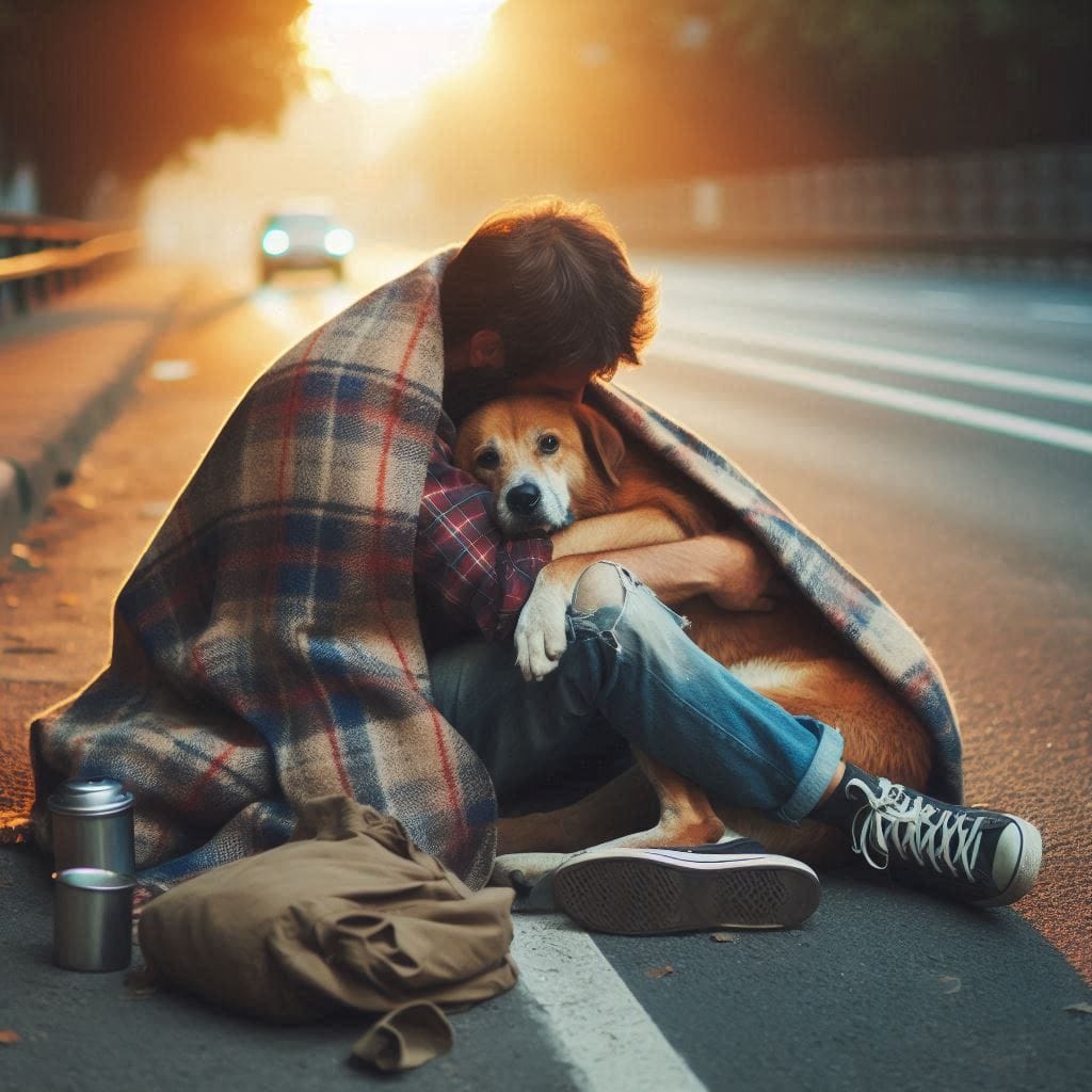 Non importa quanti errori abbia fatto. Non importa se non hanno una casa. Loro non giudicano mai. Un gigante buono, compassionevole. Una compassione colma di amore. Che stringe il cuore. Una dolcezza che è tutta per il suo umano, per le sue fragilità, per il suo dolore.